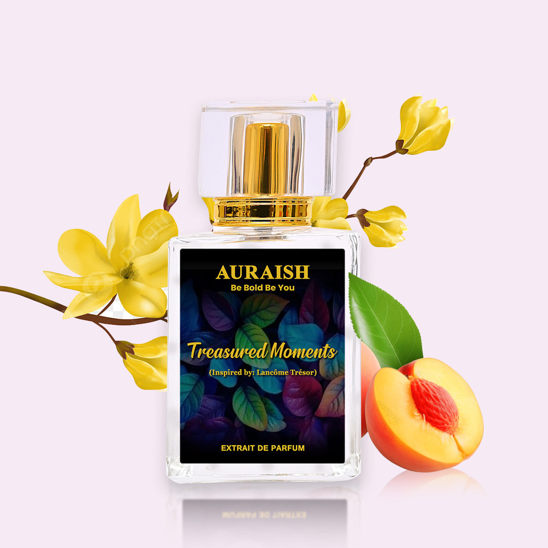 Treasured Moments is a warm, rich, and romantic fragrance. The fruity opening of peach and apricot blossom is sweet and delicate, while the heart of rose and vanilla adds a soft, powdery floral touch. The sandalwood and musk base give it a lasting warmth, making it a timeless, sensual scent.